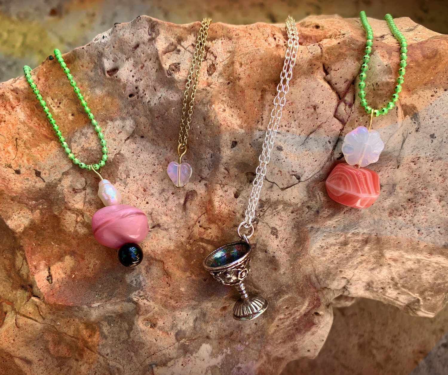 Juicy beaded charm necklaces and bracelets made with love in sunny Los Angeles, CA. I juxtapose chunky glass beads, natural materials, and one of a kind finds like vintage enamel earrings to create truly unique pieces to adorn your body.